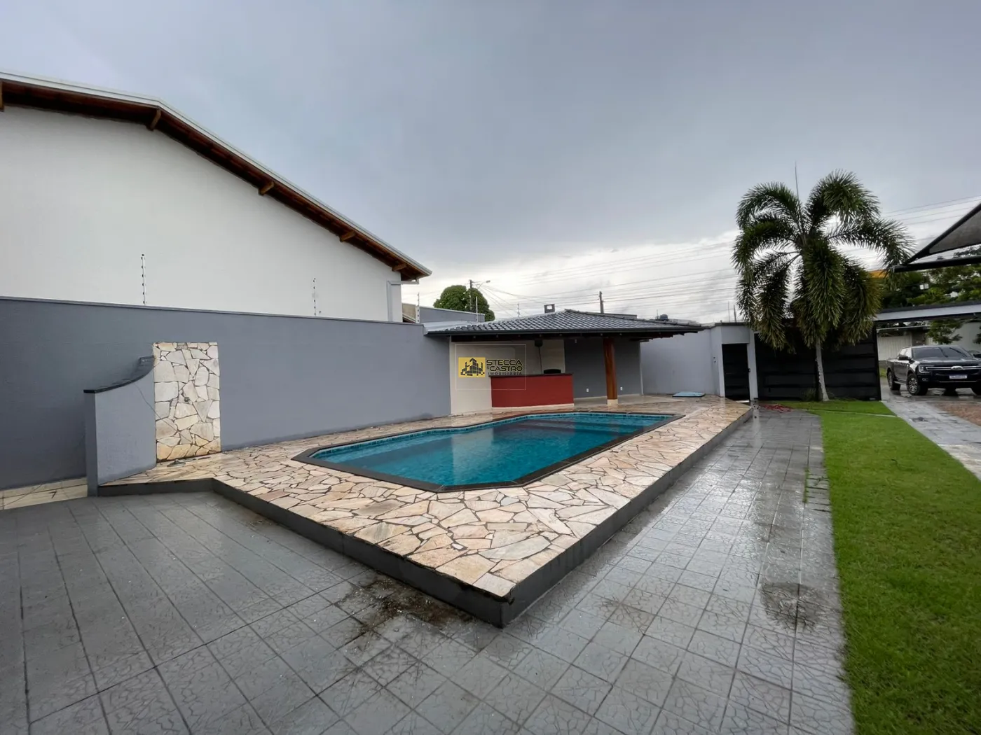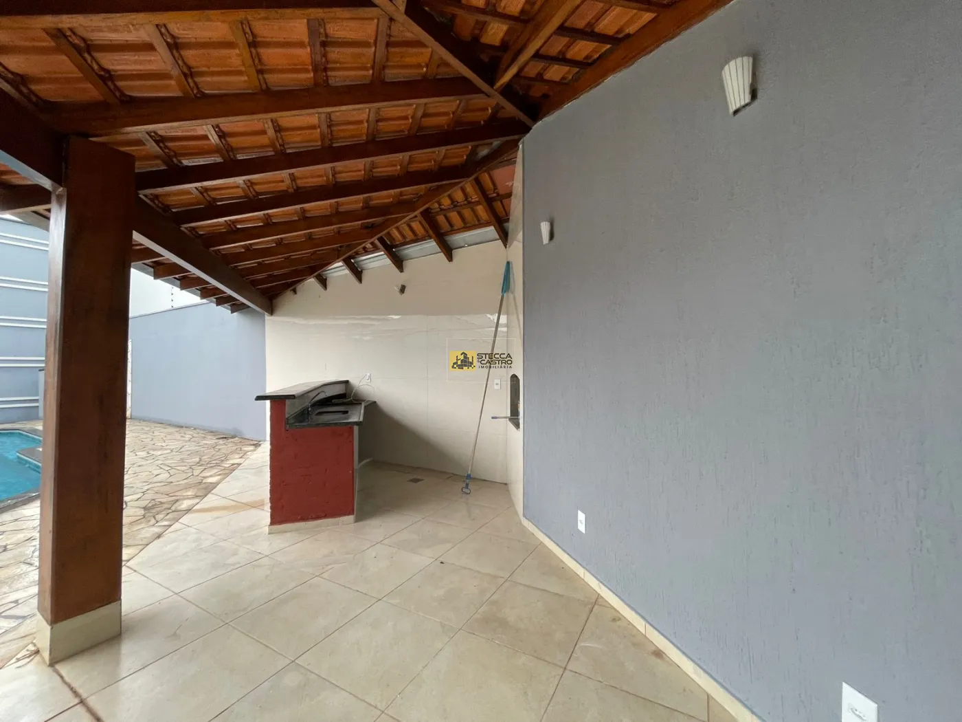 Na área externa, oferece um espaço amplo com piscina, churrasqueira e área gramada, perfeito para momentos de lazer e convivência.
