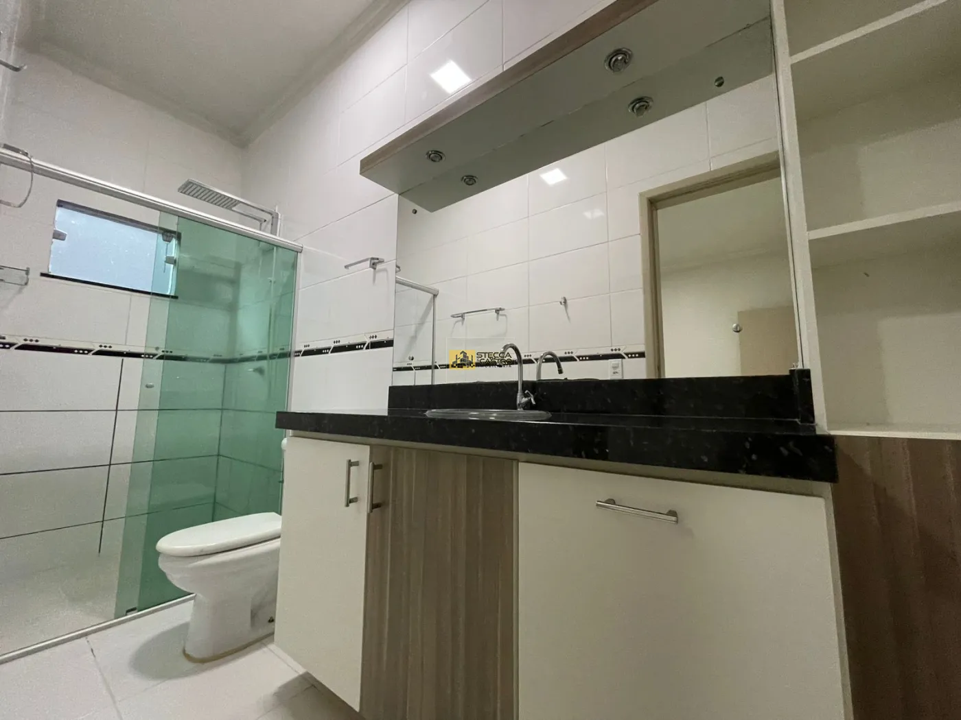 A casa conta com três suítes, sendo uma com closet