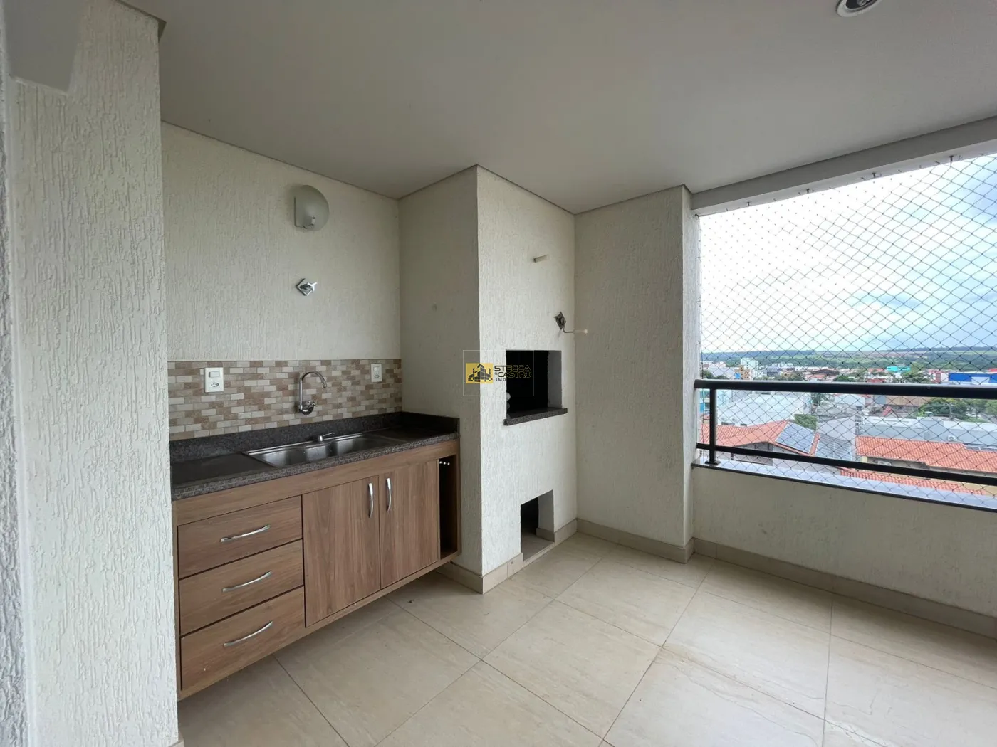 Apartamento ainda dispoe de uma área gourmet ampla e arejada, com churrasqueira, pia e armários.