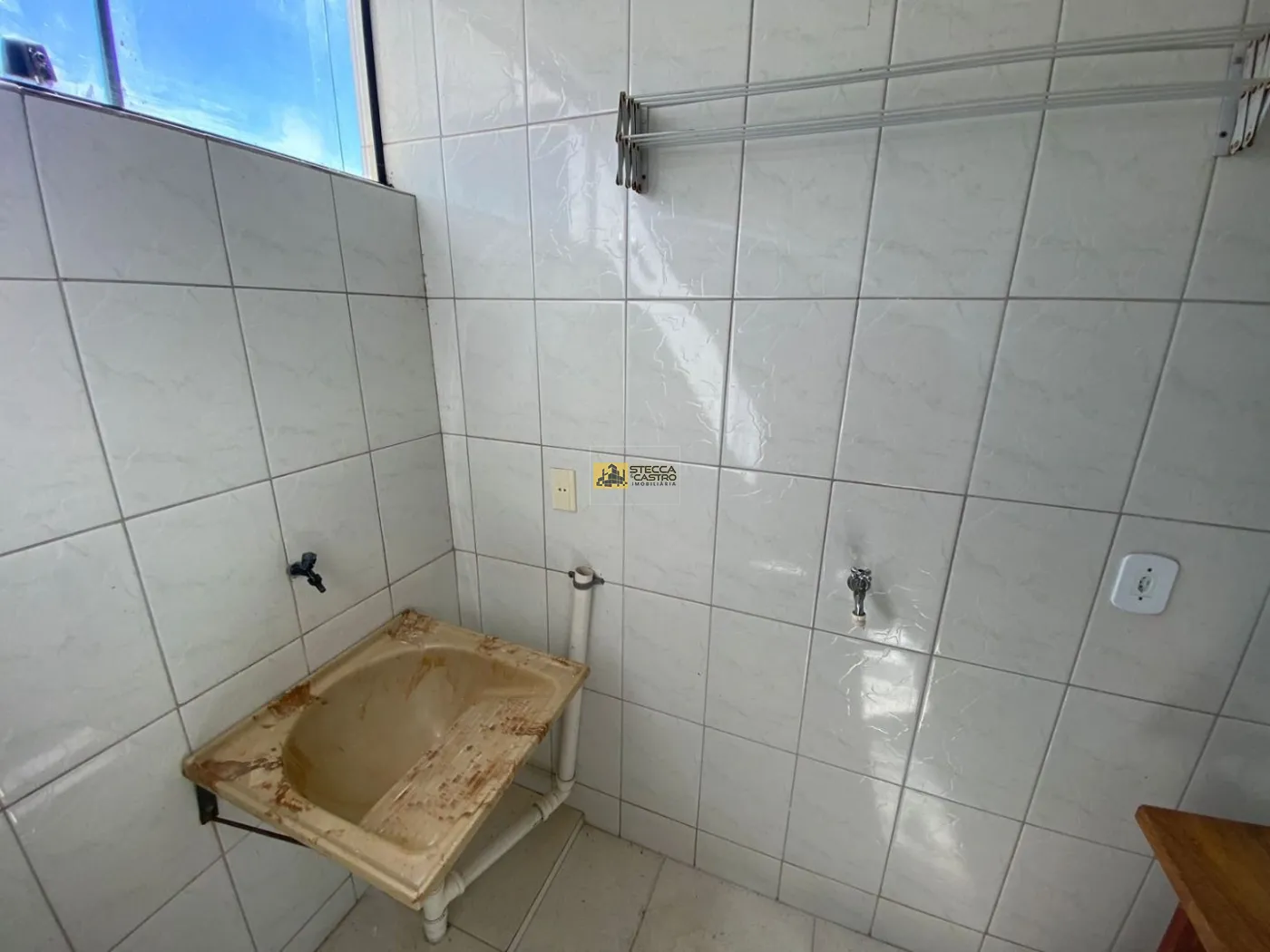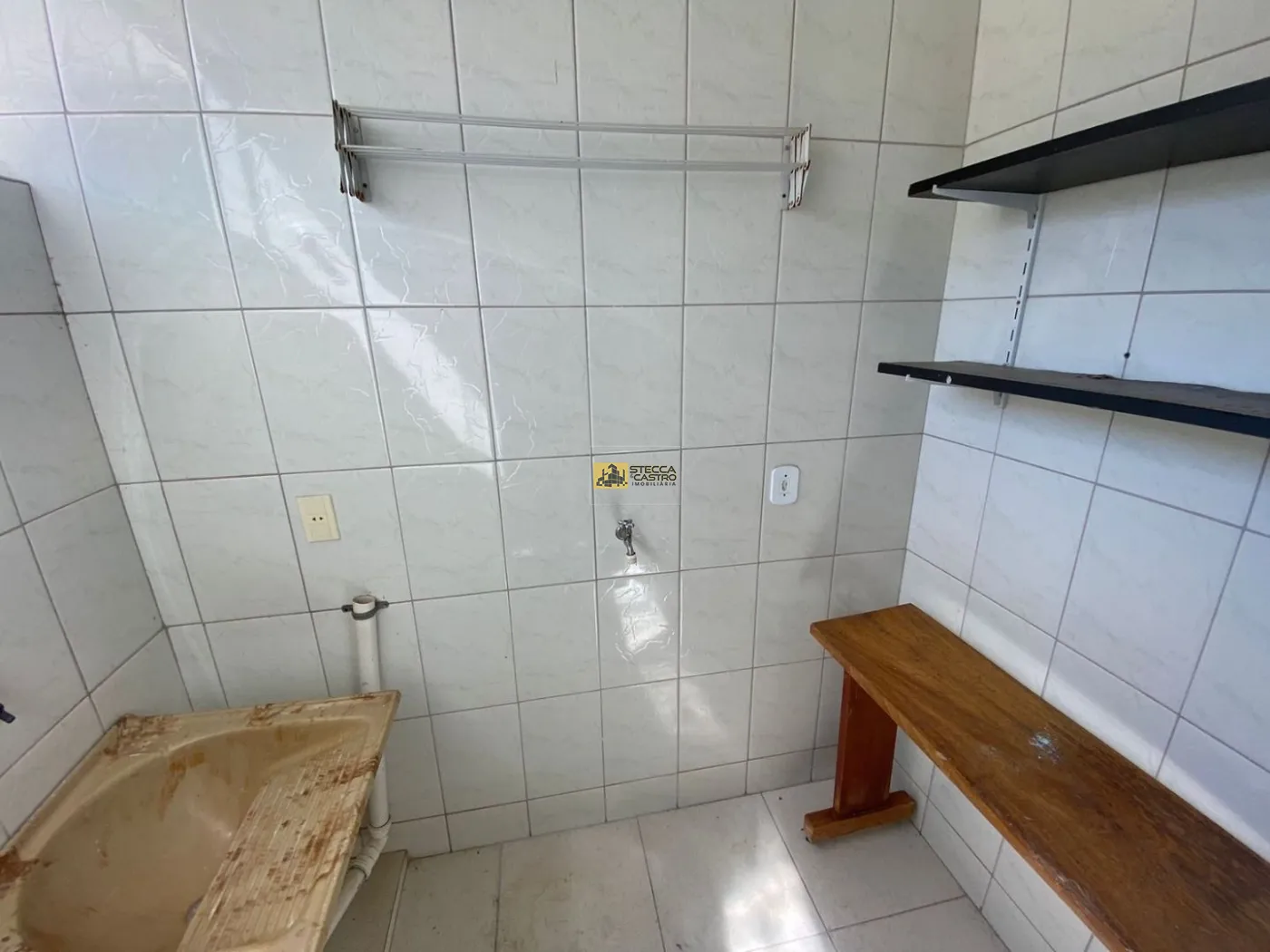 Bancada em granito bege Bahia com tanque em inox;