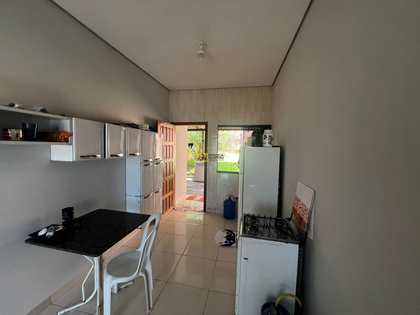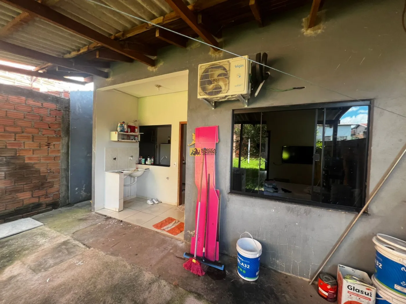 A casa conta com 2 quartos, 1 banheiro, sala e cozinha conjugadas, proporcionando um ambiente prático e aconchegante, além de lavanderia integrada.