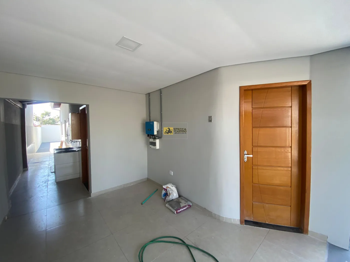 Imóvel recém-construído, moderno e aconchegante, com dois quartos bem distribuídos, um banheiro social, sala e cozinha conjugadas, área de serviço independente, quintal todo calçado, de fácil manutenção, garagem com capacidade para até 2 carros, sistema de placa solar, garantindo economia no consumo de energia.